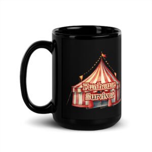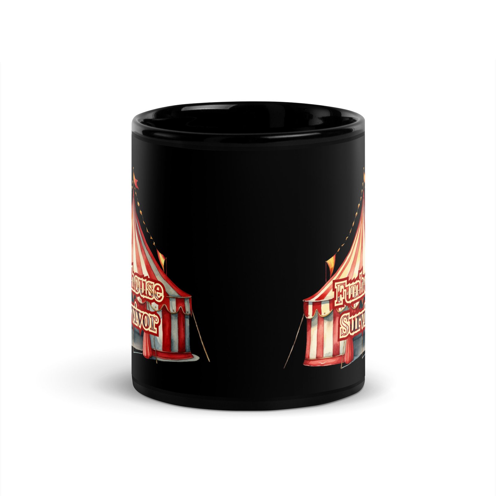 The Funhouse Survivor Black Mug is for steady hands and clear mornings. For the people who’ve learned how to keep their footing, even when the ground isn’t fair.