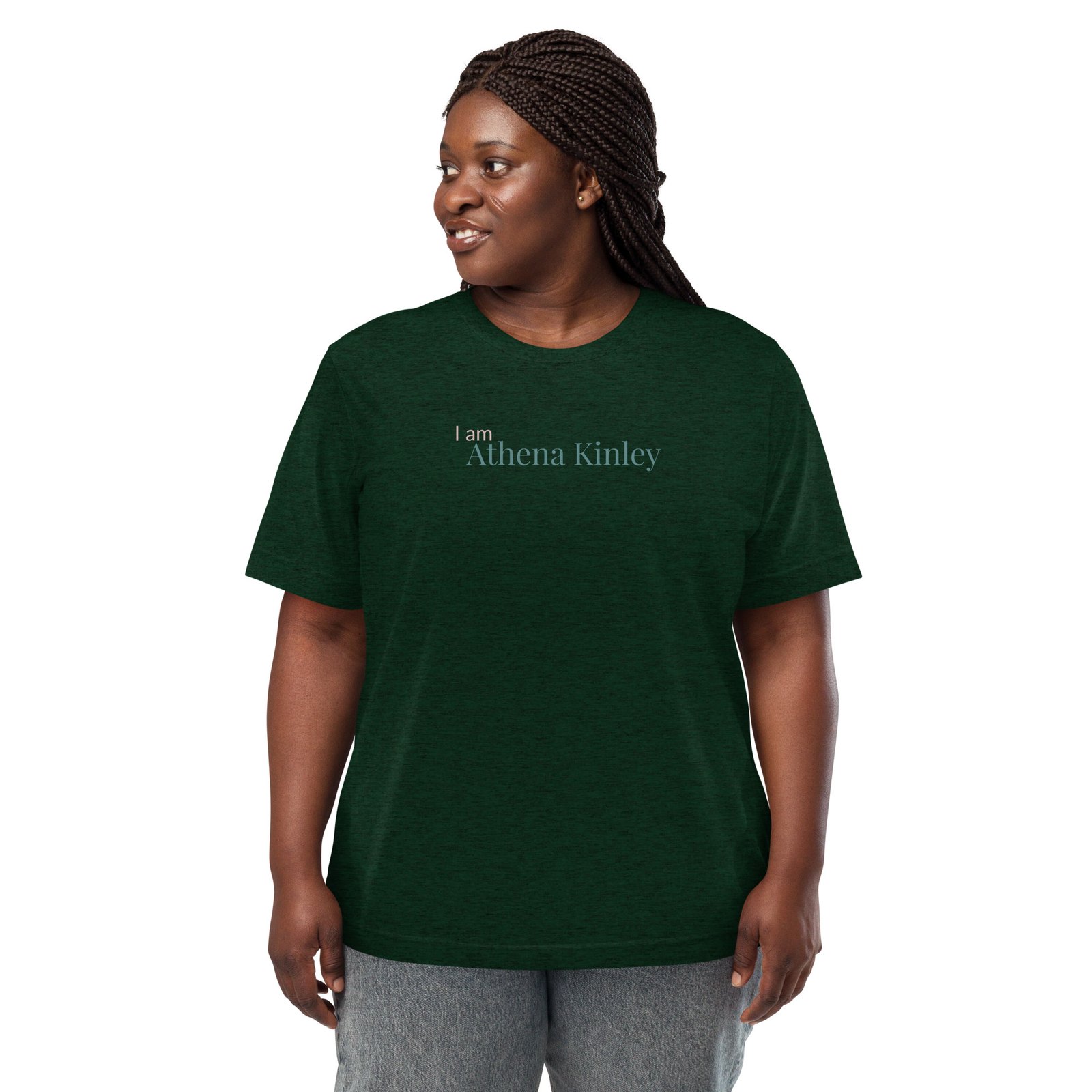 Celebrate strength, resilience, and solidarity with this soft, comfortable tee. A simple statement on the front—I am Athena Kinley—represents standing together against unfairness and supporting those who’ve endured. Perfect for layering or wearing on its own.